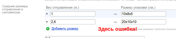 Одна из причин возникновения ошибки расчета или сообщения о невозможности посчитать стоимость доставки — некорректная конфигурация настройки с размерами упаковок. При указании размеров пользователи плагина часто забывают указать размеры упаковки для веса «от 0 кг.»